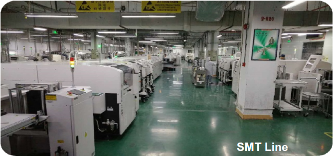 | SMT Machines: Printer 10 sets Placement 23 sets Reflow N2 2 sets Reflow AIR 4 sets AOI 8 sets ICT 11 sets Wave Soldering 2 sets Press Fit 1 set Automated Programmer 8 sets |