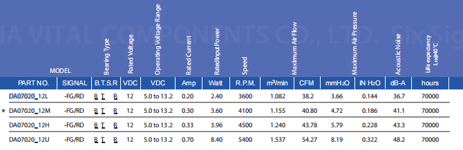 DA SERIES70x70x20 mm - Material:lmpeller& Frame: Plastic (UL 94-0)