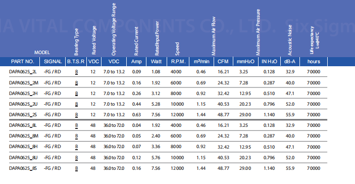 DAPASERJES60x60x25 mm 12v,48v - Material lmpeller&Frame:Plastic(UL94V-0)