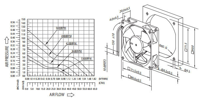 Material: lmpeller & Frame: Plastic (UL 94V-0)