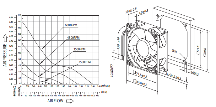 Material: lmpeller & Frame: Plastic (UL 94V-0)