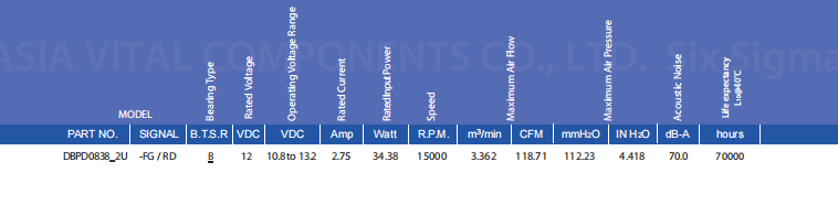 DC AXIAL FANSDBPDSERIES80x80x38 mm - Material lmpeller& Frame: Plastic (UL 94V-0)