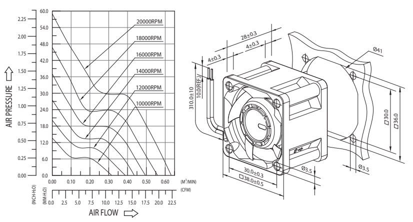 | MODEL | Bearing Type | Rated Voltage | Operating Voltage | Current | Input Power | Speed | Air Flow | Air Pressure | Acoustic Noise | Life expectancy | |||