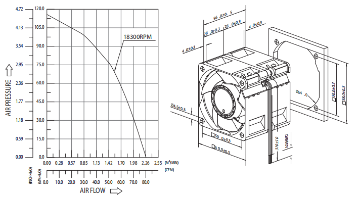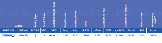 - Lead Wires: UL 1007 AWG #26 or EquivalentImpeller: 5 Bladesinlet,4 Blades outet