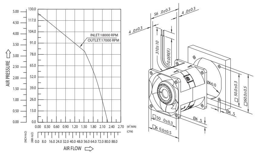 | MODEL | Bearing Type | Rated Voltage | Operating Voltage | Current | Input Power | Speed | Air Flow | Air Pressure | Acoustic Noise | Life expectancy | |||
