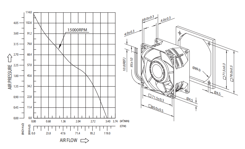 • Material: Impeller & Frame: Plastic (UL 94V-0)