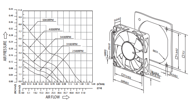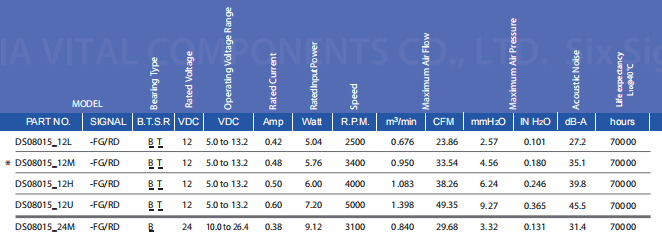 DS SERIES80x80x15 mm12v,24v - Material: lmpeller & Frame: Plastic (UL 94V-0)